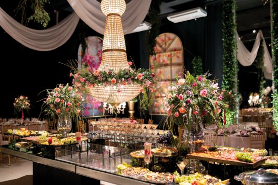 El servicio gastronómico de Talleyrand fue excepcional. La entrada consistió en una mesa de antipastos con una vasta selección de quesos, embutidos, sushi, ceviche, caviar y otros bocados refinados. El plato principal fue un bufé con diversas opciones de carnes, pescado, cerdo, risotto y pastas. La mesa de postres, a cargo de Samira Teme, ofreció una dulce tentación. La torta de cumpleaños, creación de Armando Teme, fue admirada por todos.