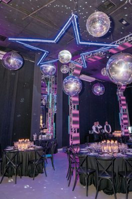 Desde el primer momento, los invitados se sumergieron en una atmósfera techno chic ideada por Adrián Aguirre, de We Do Producciones. Un fascinante juego de láseres, globos cromados y esferas espejadas transformó el salón y creó una experiencia visual impresionante que capturó la atención de todos.
