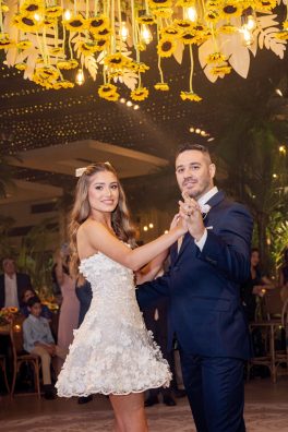 La quinceañera llegó a su fiesta en Talleyrand Costanera para su sesión de fotos, y posó con total naturalidad y elegancia. Después, con una gran sonrisa, dio la bienvenida a todos sus invitados. En el salón, Bruno Enmanuel no se limitó a decorar, sino que creó un mundo natural moderno. Las flores se fusionaron con estructuras sostenibles y una iluminación sutil. La deco, dominada por girasoles, fue un sueño hecho realidad para Damara, tal y como lo había imaginado desde que era niña.
