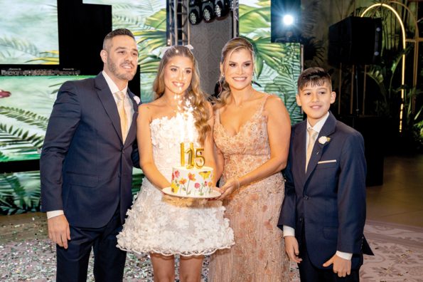 Sus padres, que le dedicaron un año a los preparativos, se quedaron sin aliento al verla vestida en su gran noche y reflexionaron sobre el paso del tiempo, asombrados de cómo había crecido tan rápido. El vals, más que un baile, fue un sentimiento compartido al compás del ¾. Una vez terminados los protocolos, Damara se liberó y se unió a sus amigos para celebrar. La música de los DJs Cami Flecha y Pipo Pineda se encargó de crear el ambiente perfecto para una velada inolvidable.