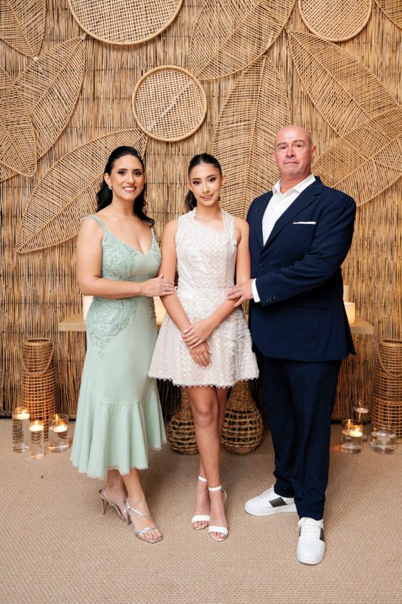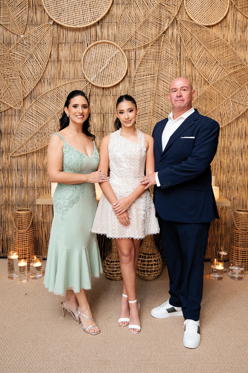 Después de dar gracias al Altísimo por la vida y salud de Coti, fue hora de celebrar con todas las letras. El salón de la fiesta fue decorado por María Inés Angulo, que diseñó una ambientación cálida, impactante, con tacuarilla, mimbre, fibras naturales y hojas secas que se combinaron con una iluminación sutil. El resultado fue un espacio orgánico, elegante y contemporáneo. Luego de bailar el vals y posar para todos los flashes, la jovencita disfrutó al máximo junto a sus compañeros y amigos del colegio San Andrés. La música estuvo a cargo de TRES P Producciones, con los DJs Pipo Pineda y Ale Barrios que hicieron vibrar el salón hasta entrada la madrugada.