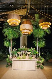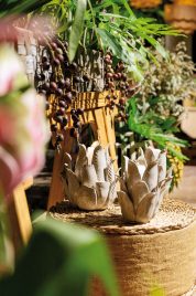 La decoración, a cargo de El Depósito, transformó el espacio en un elegante jardín con mesas de madera, estructuras metálicas cubiertas de verde, flores en tonos suaves, helechos y detalles botánicos. Antes de entrar, Josefina se tomó un tiempo para protagonizar su sesión de fotos, y posó con su presencia serena, dulce y segura.