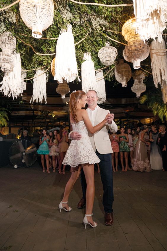 Rápidamente los invitados fueron colmando el salón y, sin más, llegó el momento del vals. Primero, Josefina bailó con su papá y luego con sus invitados. La fiesta se encendió con los DJs Pipo Pineda y Matías Lozano.