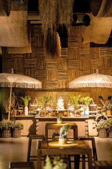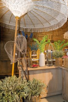 La cita fue en el salón La Cueva y la fiesta fue de estética coastal, con una elegancia relajada. Tonos arena, beige, aguas y celestes evocaban cielo y mar, entre texturas de madera, ratán, yute y lino. Floppy la describió después como única e inolvidable. Su momento favorito fue precisamente ese, el primer vistazo al lugar ya montado, cuando la idea se volvió realidad frente a sus ojos. La joven recibió con alegría a todos sus invitados, cumplió con el protocolo establecido y luego se dedicó a disfrutar con sus amigos.