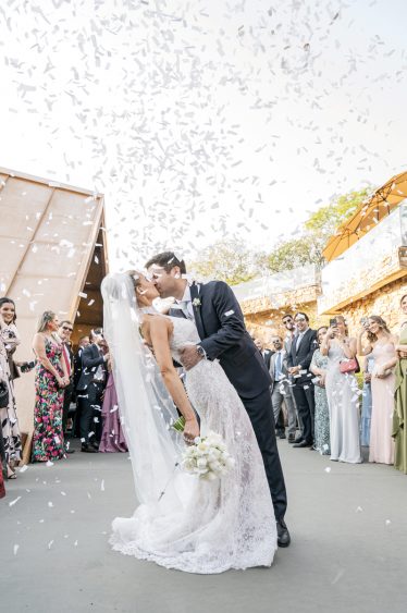 Luego del civil, con el ocaso como telón de fondo, llegó el momento de compartir con sus invitados la elegante recepción. El vals abrió la pista: Giuliana bailó con su padre, Diego con su madre y enseguida se fundieron en su propio compás con la canción Qué suerte tenerte, de Fonseca. La música, primero de The Bantus en la previa y luego de DJ Aya en la fiesta, hizo que la celebración nunca bajara el ritmo.