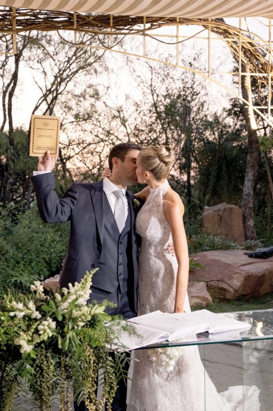 A las 16.30, Giuliana llegó a la capilla y cumplió el deseo de ser acompañada por su hermano, quien la llevaría hasta el altar para entregarla a su padre. Durante el trayecto, los nervios eran intensos, pero al descender del auto, toda la ansiedad se disolvió en pura alegría. El miedo desapareció al cruzar miradas con Diego en el altar, un momento que ella grabó en su alma para siempre. En una ceremonia cargada de amor, intercambiaron alianzas, sellaron su unión y se convirtieron en marido y mujer.