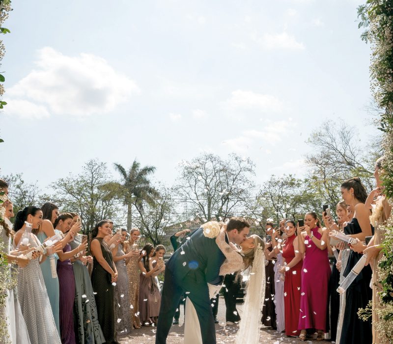 Fue una recepción luminosa y alegre. El clima acompañó de manera perfecta y permitió una previa al aire libre con la propuesta musical de The Bantus. Cuando los recién casados hicieron su entrada con la canción Todo contigo, de Álvaro de Luna, el ambiente se llenó de abrazos, brindis y los mejores deseos de felicidad para la nueva familia.