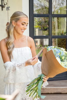 Para la novia, el vestido fue una de las partes más memorables del proceso. Creado por Florencia Soerensen, cada prueba representó un momento colmado de ilusión. “Fue de lo que más me ocupé y la parte que más disfruté”, confiesa Inés. El diseño, sobrio y elegante, presentaba un cuello halter y una falda de crepé con drapeado suave. Sin embargo, el detalle más conmovedor fue la blusa que usó durante la ceremonia religiosa: la misma que llevó su madre en su propia boda hace 32 años, un gesto cargado de significado que tejió pasado y presente con delicadeza. Su ramo fue una creación de Laefe. Alexis González la peinó y Ámbar Mascareño la maquilló.