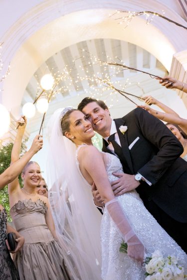 La historia de Stephanie Hellmers Dos Santos y Matías Alarcón Migone es un hermoso testimonio de amor y destino que comenzó hace cuatro años. Fue una amiga en común —una persona luminosa, cuya huella sigue viva a pesar de su ausencia física— quien decidió, con visión y afecto, unir sus caminos. Su misión fue completamente exitosa, pues conectaron enseguida; luego de una sólida relación, se citaron en el altar de la Catedral Metropolitana para convertirse en marido y mujer.