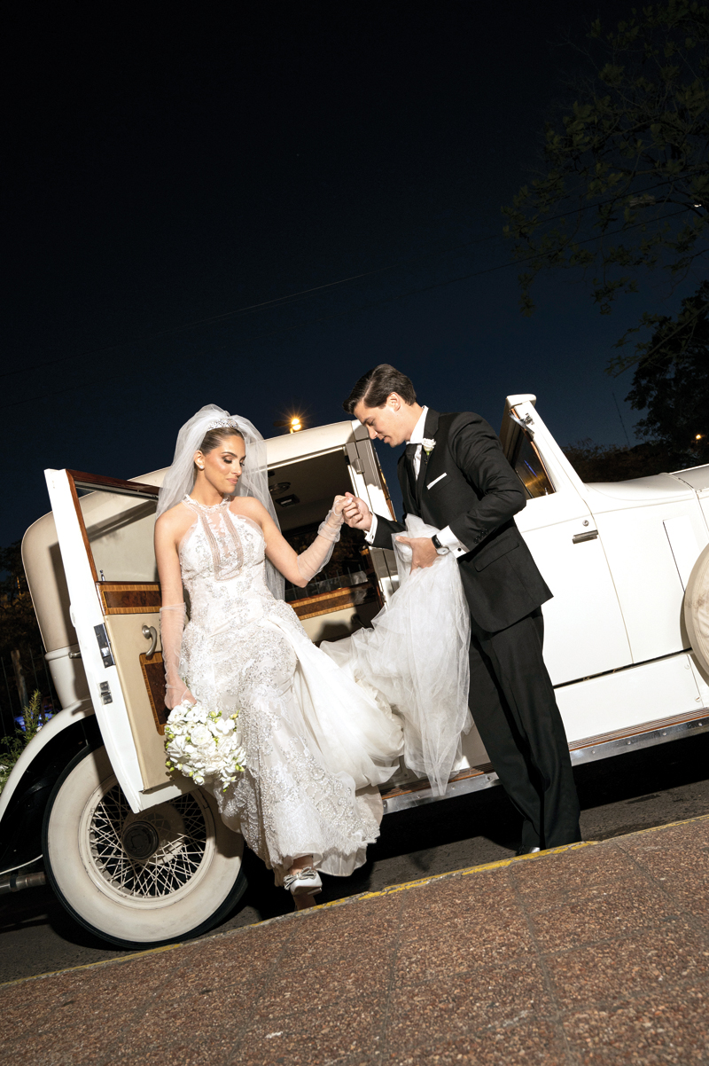 El día prometido fue el 22 de noviembre. La llegada de la novia al templo fue a bordo de un Rolls Royce Phantom I de 1929, una joya restaurada por su papá, Norman Hellmers, y símbolo de una dulce tradición familiar que también acompañó la boda de su hermana Nicole. Apenas el coro de Ale Stipanovich inició su canto, su padre tomó su brazo y, con cada paso hacia el altar, aquel instante se convirtió en un recuerdo suspendido en el tiempo.