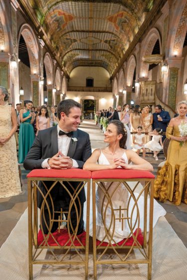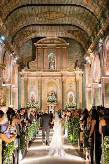 La novia llegó a la iglesia en un Chevrolet Corvette C1 de 1955. El momento más conmovedor fue el encuentro con su padre en la puerta, quien la escoltó con paso firme hacia el altar. Agus irradiaba felicidad absoluta. Al otro lado del pasillo, el novio la observaba con un sentimiento inexplicable; al verla tan bella, supo que el sueño de formar una familia ante Dios estaba por comenzar.