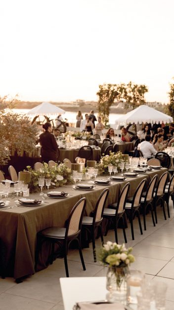 Tras el sí, quiero, los nuevos esposos y sus invitados se trasladaron a Casa Puente. El lugar fue transformado por la visión de Pachi Maluff, para Art Decor, que creó una atmósfera idílica. El banquete estuvo a cargo de U Catering, mientras que la mesa de dulces llevó la firma de Coco Leiva. La energía de la noche se mantuvo en lo más alto gracias a una curaduría musical excepcional. El set de DJ Hallam y el ritmo de DJ Nico Pietro, que vino de Argentina, hicieron que la pista estuviera llena hasta el amanecer.