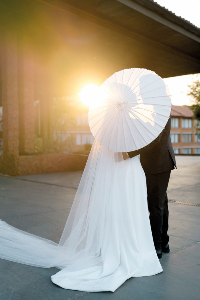 Karen es decoradora y diseñadora. A lo largo de su carrera fue testigo de muchas bodas y momentos especiales, pero el vestido más emotivo que le tocó hacer fue el suyo. El traje nupcial lo ideó ella misma y lo confeccionó la señora Elena Canepa. Quería una pieza estilo europeo, lisa, clásica, elegantemente atemporal, que no respondiera a una moda sino a una historia. Complementó su look con un tocado de Jadiyi Yaluff. Fue maquillada por Óscar Rojas y peinada por Manu Roa, de La Pelu Hair. Cada elección, cada gesto, fue de una novia que soñó con tanto cariño su gran día.