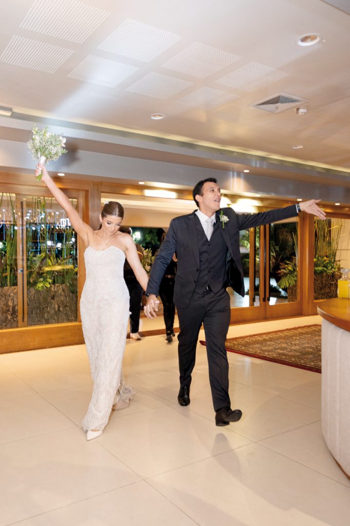 Cuando llegó al templo a bordo de un Porsche 356 de 1964, la emoción ya era incontenible. Caminó hacia el altar con una mezcla de felicidad y nervios; justo al final del pasillo estaba él, Lucas, quien no podía dejar de mirarla. Durante la ceremonia, la sesión de fotos y toda la fiesta, sus ojos volvían a ella como si fuese la primera vez. Emocionado, casi incrédulo, se le escapaban lágrimas que no intentaba disimular y, en medio de todo, le susurraba constantemente lo hermosa que estaba. Como si repetirlo fuera la única forma de procesar lo que estaba viviendo.