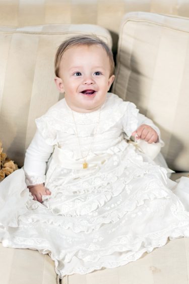 Ramiro lució el vestido de bautismo que perteneció a su papá y también a su hermanito Enzo, una verdadera reliquia familiar. Como recuerdo, se entregaron denarios y botellitas con agua bendita. Para los pequeños invitados, Colorín Colorado, empresa de la mamá de Rami que se dedica a hacer actividades personalizadas según la temática del evento, preparó una divertida propuesta: los niños decoraron y rellenaron con espuma sus propios angelitos, y recibieron un certificado de adopción que incluía la oración del ángel de la guarda.
