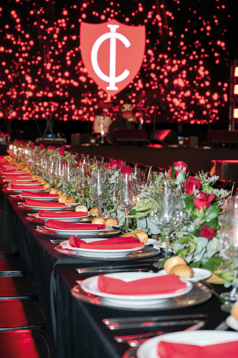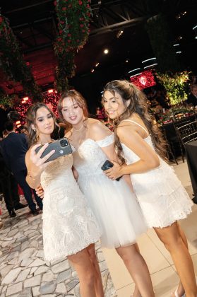 Desde temprano el salón fue deslumbrado con flashes y alegría durante la sesión de fotos familiares, con distintos sets especialmente preparados, la escalinata con las letras corpóreas Inter 2025, la pista de baile y la icónica pecera del salón. La ambientación, a cargo de Armando Teme, aportó elegancia y sobre todo estuvo colmada con la identidad de la institución, como rosas y detalles en tono rojo.