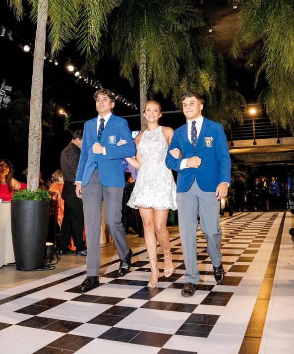 El acto tuvo momentos de alto voltaje emocional: el vals, la conducción de Pope Spinzi y la puesta técnica de Hallam Nolan, que permitió seguir cada instante a través de pantallas gigantes distribuidas estratégicamente por el salón. Todo el protocolo llegó a su fin con la foto grupal de la promoción, enmarcada por fuegos artificiales y el aplauso de los orgullosos padres.