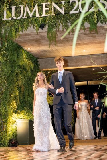 La celebración en el Talleyrand Costanera reunió a 56 egresados. A las 18.30, las fotos familiares marcaron el primer acto de una noche cargada de abrazos largos, miradas orgullosas y esa mezcla inevitable de nostalgia y felicidad. Más tarde comenzaron a llegar los invitados y familiares, que llenaron el salón de expectativa y sonrisas. El momento más esperado se dio a las 21.30, con el desfile de los egresados. En pareja, los chicos fueron avanzando a la formación, celebrados por los aplausos de quienes los vieron crecer, estudiar y formar su personalidad.